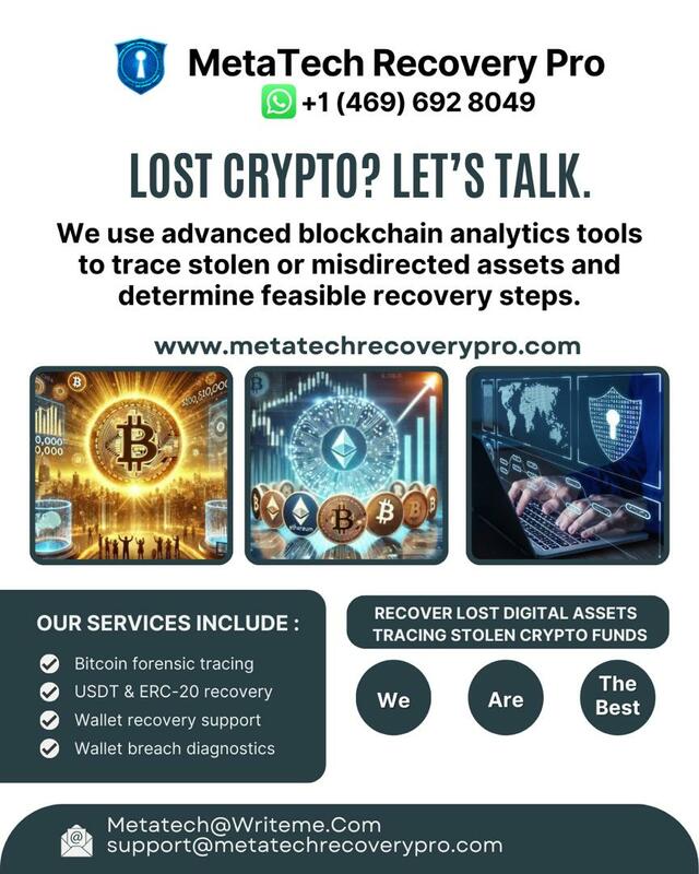 By hiring META TECH RECOVERY PRO, you engage professionals committed to restoring assets that are rightfully yours. Initiate action promptly before recovery opportunities diminish. for help via:Telegram:@metatechrecoveryproteamW/S https://wa.link/5ay4fvMetatech@Writeme.Comhttps://metatechrecoverypro.comsupport@metatechrecoverypro.com