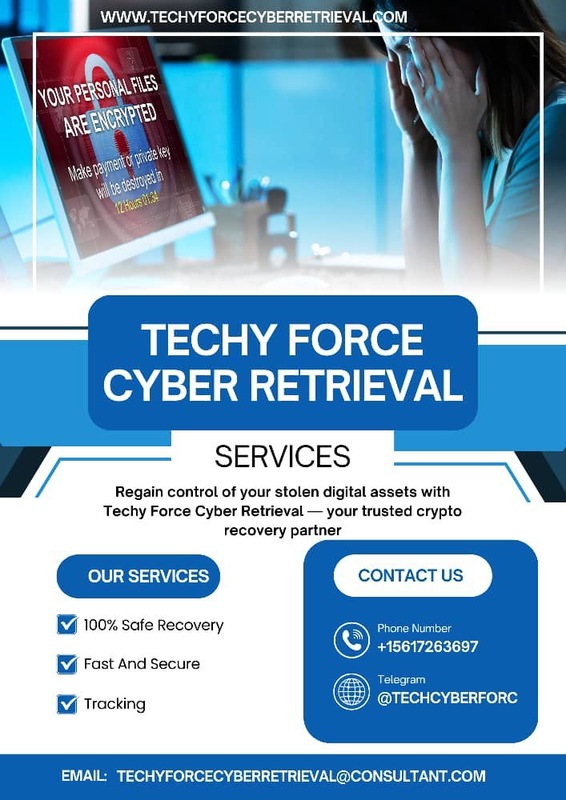 After conducting an extensive search for a reputable recovery service, I stumbled upon TECHY FORCE CYBER RETRIEVAL. This organization has garnered a reputation for its expertise in crypto recovery projects, boasting a team of highly skilled professionals well-versed in the intricacies of the hacking world. Upon engaging their services, I was impressed by their professionalism, transparency, and dedication to retrieving my stolen funds. Throughout the recovery process, they maintained open lines of communication, providing regular updates on the progress of their efforts. Their expertise in navigating the complex world of cryptocurrency and their ability to track and retrieve stolen assets are truly commendable.The outcome of their efforts was nothing short of remarkable.